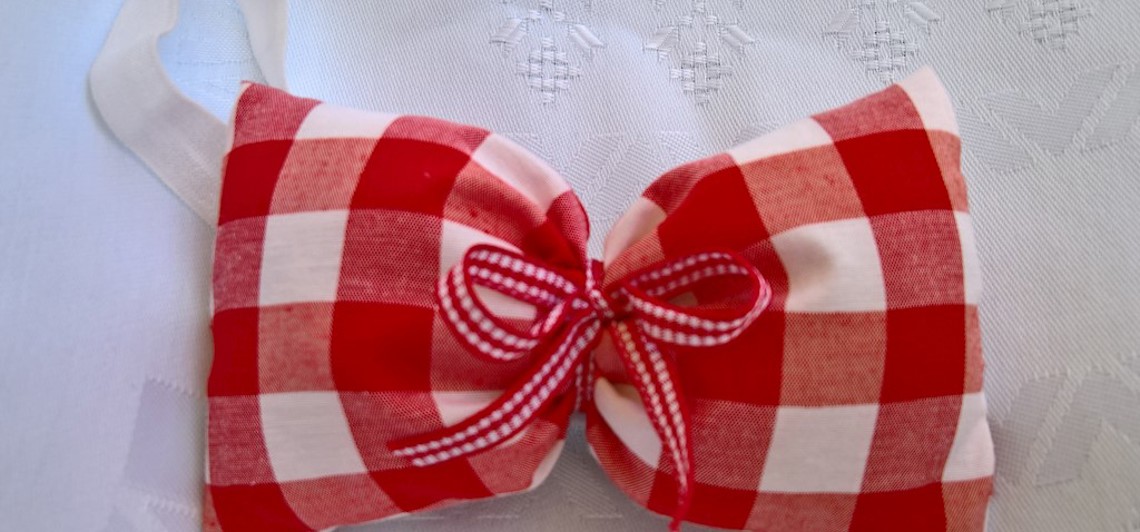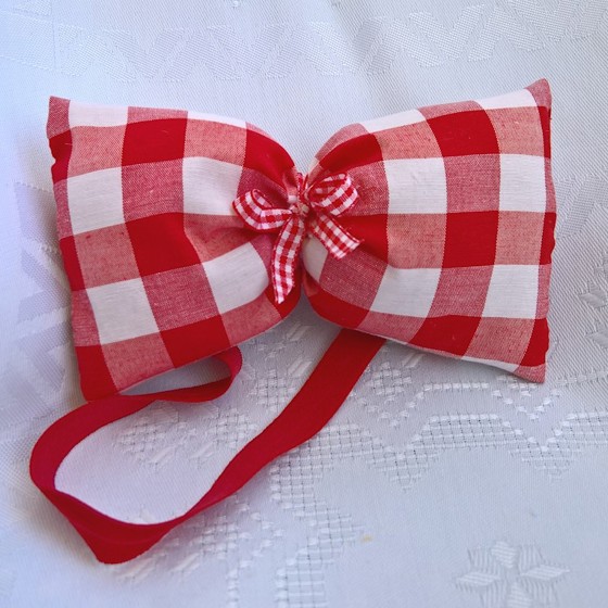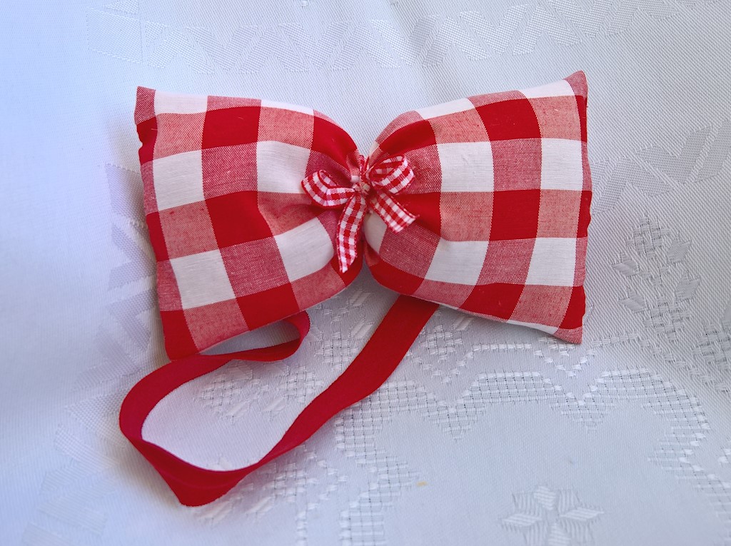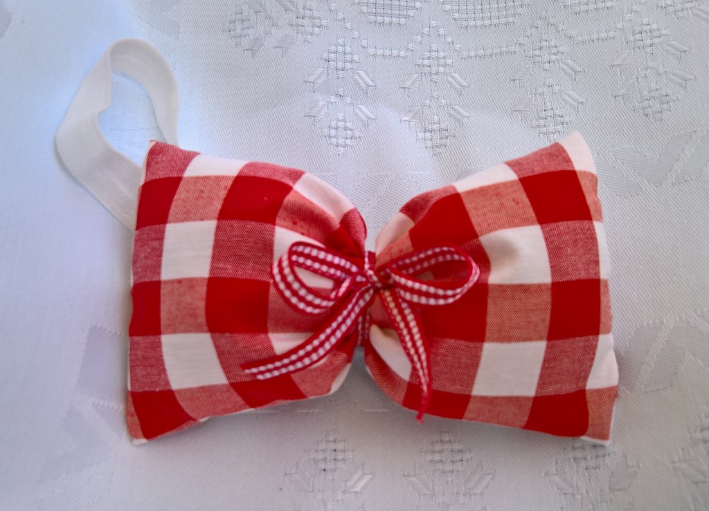 Καρό κορδέλα μαλλιών σε λευκό και κόκκινο χρώμα με μεγάλο γεμισμένο φιόγκο και φιογκάκι. Με γυαλιστερό μαλακό λάστιχο. Το λάστιχο είναι σε λευκό ή σε κόκκινο χρώμα.