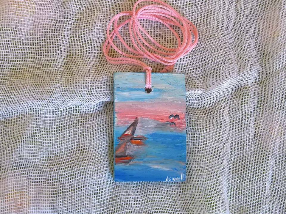 Κολιέ από ξύλο ζωγραφισμένα στο χέρι με ακρυλικά χρώματα και βερνίκι.